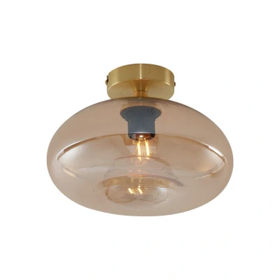 General description Add a touch of elegance and warmth to your interior with the Busa Art Deco ceiling light in brass with amber glass. This beautiful lamp radiates luxury and sophistication, thanks to its shiny brass frame and ornate glass shade in a warm amber color. The soft light diffused through the amber glass creates an inviting and atmospheric glow, ideal for the living room, bedroom, or hallway. The timeless design of Busa effortlessly combines retro Art Deco elements with modern simplicity, making it perfect for various interior styles. With its compact size, this ceiling light is not only stylish but also practical for smaller spaces or lower ceilings. Technical specifications Bulb holder: E27 Max wattage: 1 x 15 W Voltage: 230 V Connecting voltage: 220V/230V Protection class: IP20 Dimmable: Yes (dimmer not included) Lightsource: Exclusive Compatibility and accessories Suitable for: LED bulbs Recommended living spaces: Indoor lights, Dining room, Hallway, Office/Work area,
