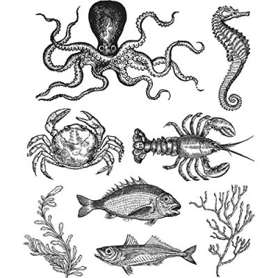 Art Gone Wild AGCMS304 Tim Holtz Sea Life Cling Rubber Stamp Set, Synthetic Material, Multi Colour, 24.5 x 18 0.6 cm