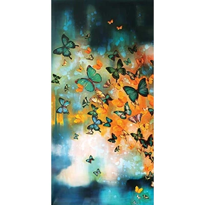 Art Group WDC93255 The Lily Greenwood (Butterflies on Prussian Blue) Canvas Print 50 x 100cm, Wood, Multi Colour, 100 1.3 cm