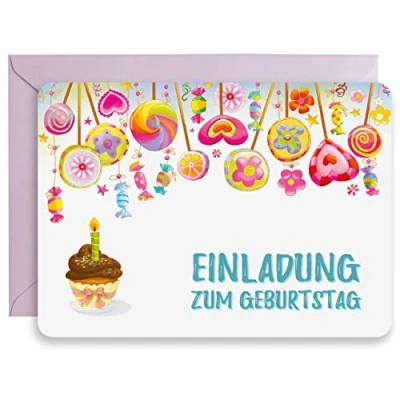 Cute, colourful invitation cards for your child's intoxicating birthday party Blank fields are easy to fill in (date, place, time, etc. of the party) and are located on the back of the invitation card The packaging contains: 10 invitation cards printed on thick cardboard 350 g in DIN A6 format (105 x 148 mm) and 10 coloured envelopes made of fine paper 120 g Give your child and their friends a lot of fun with the help of our adorable invitation cards