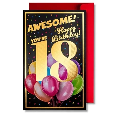 Original, unique birthday card, handmade in an art factory In their production we used fine paper and applied beautiful glossy prints Perfect for girls and boys for their 18th birthday Inside the coloured card there is plenty of space to write your own wishes The card comes with a red envelope to give it an even more festive character The birthday card measures 130 x 205 mm and the envelope 135 x 210 mm