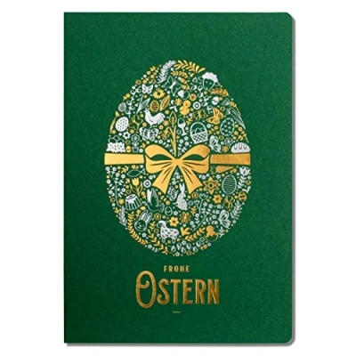 Set of 10 Easter cards with envelopes – 10 cards as a manufacturer product made of high-quality matte paper. This exclusive set is the gold foil printed cards in green and beige inserts for individual wishes and white envelopes. Colours, paper, dimensions: cards – matt jewellery paper 250-270 g/m² with the dimensions 240 x 170 mm (120 x 170 mm folded). Inserts - Offset paper in light beige 120 gsm with the dimensions 230 x 160 (115 x 160 mm folded). Cards and inserts have rounded corners. Envelopes - white offset paper 100 gsm, feels medium thick Text of wishes: the cards are delivered blank, without desired text. Your individual wishes can be handwritten on included inserts or printed with an office printer that operates the print format 230 x 160 mm. For business – there is the possibility to place company logo on the front of the Easter cards and have wishes printed on the insert – more information is available on our page artnuvo.de INFO BZGL. Colours: depending on the monitor used and its settings, the colour of the invitations may vary slightly from the original. The film used for printing shimmers in the light and may appear lighter or darker than the given colour.