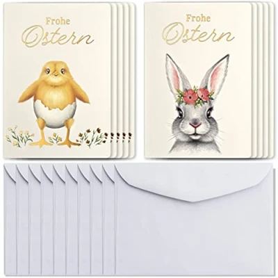 Art Nuvo Exclusive Set of 10 Easter Cards, Made from fine Paper with Light Beige Inserts and envelopes, 120 x 170 mm