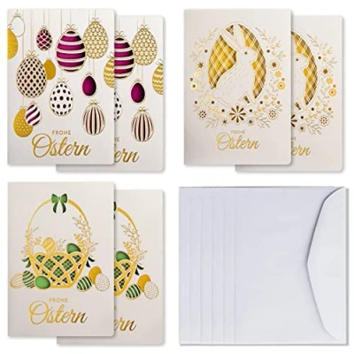 Art Nuvo Exclusive Set of 6 Easter Cards, Made from fine Paper with Colourful Inserts and envelopes, 120 x 170 mm