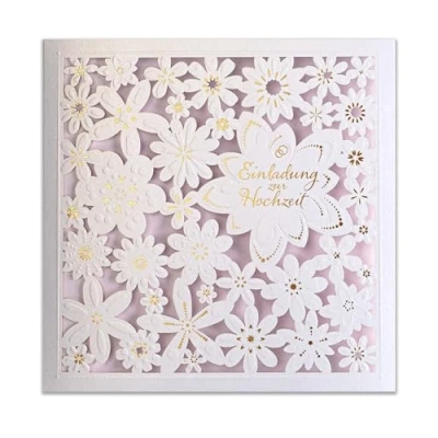 art nuvo Wedding Invitations Pack of 20 135 x mm with Printable Inserts and Envelopes for Laser Cut Gold Foil Finished Printed Pattern on Metallic Card