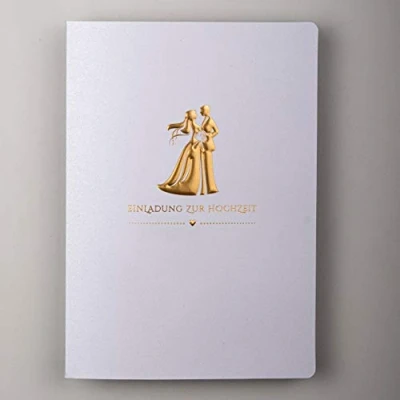 ART NUVO - WEDDING INVITATION SET INCLUDES: 20 pcs gold plated invitation cards, 22 pcs inserts for printing, 20 envelopes COLOURS AND DIMENSIONS: Invitations – Gold Plated Invitation – Dimensions 240 x 170 mm (120 x 170 mm folded); Insert – White – Dimensions 230 x 160 mm (115 x 160 mm folded); Envelopes – White – Dimensions: 125 x 175 mm Paper and design: we use the highest quality jewellery paper varieties to make these wedding invitations. The invitations are made from 250 g decorative paper, inserts of 120 g and envelopes made of 100 g offset paper. All paper types meet the FSC standards of responsible management. Text of wishes: the inserts are blank on both sides - unprinted. You can design them yourself and print wishes that will impress your guests. The inserts can be printed with conventional printers. To avoid mistakes, we recommend making a sample print before all inserts are printed. We put two additional inserts (22 pieces), in case something goes wrong. Information BZGL. Colours: Depending on the monitor used and its settings, the colour of the invitations may vary slightly from the original.