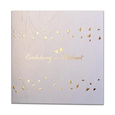 Art Nuvo wedding invitation set includes: 20 pieces. Pressed invitation cards with coloured metallic foil, pack of 22 inserts for printing (we include two extra), 20 blank envelopes Colours and dimensions: white invitation – dimensions 270 x 135 mm (135 x 135 mm folded); white insert – dimensions 260 x 125 mm (130 x 125 mm folded); white envelope – dimensions: 140 x 140 mm Paper and design: we use the highest quality jewellery paper varieties to produce these wedding invitations. The invitations are made from 250 g metallic jewellery paper, 120 g inserts and envelopes made of 100 g offset paper. All types of paper meet the FSC standards of the responsible economy. Our maps are designed and manufactured in Europe - Poland. Text of wishes: the inserts are blank on both sides. You can design them yourself and print wishes that will impress your guests. The inserts can be printed with conventional printers. To avoid mistakes, we recommend testing before all inserts are printed. We put two additional inserts (22 pieces) in case something goes wrong. INFO BZGL. Colours: depending on the monitor used and its settings, the colour of the invitations may vary slightly from the original.
