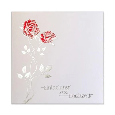Art Nuvo wedding invitation set includes: 20 pieces. Pressed invitation cards with coloured metallic foil, pack of 22 inserts for printing (we include two extra), 20 blank envelopes Colours and dimensions: white invitation – dimensions 270 x 135 mm (135 x 135 mm folded); white insert – dimensions 260 x 125 mm (130 x 125 mm folded); white envelope – dimensions: 140 x 140 mm Paper and design: we use the highest quality jewellery paper varieties to produce these wedding invitations. The invitations are made from 250 g metallic jewellery paper, 120 g inserts and envelopes made of 100 g offset paper. All types of paper meet the FSC standards of the responsible economy. Our maps are designed and manufactured in Europe - Poland. Text of wishes: the inserts are blank on both sides. You can design them yourself and print wishes that will impress your guests. The inserts can be printed with conventional printers. To avoid mistakes, we recommend testing before all inserts are printed. We put two additional inserts (22 pieces) in case something goes wrong. INFO BZGL. Colours: depending on the monitor used and its settings, the colour of the invitations may vary slightly from the original.