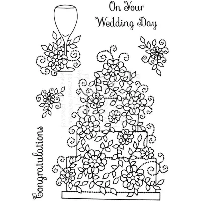 Wedding Cake. Permanently clear stamps produced in a thicker photopolymer sheet (3.2mm). Easy to align for precision stamping. Sticky back for direct mounting onto acrylic blocks. Can be used stored and reapplied many times. size A6. Designed by Sue Dix PICSA6402 PICSA6402 MPN