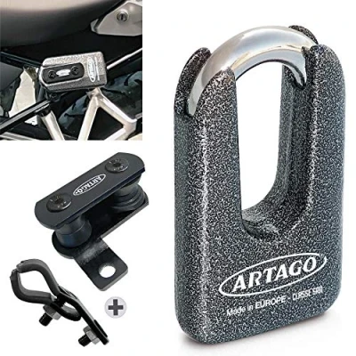 2 IN 1 PACK: The 69T/B anti-theft disc lock plus the transport bracket for the Ducati Monster 1200/1100/821/797/796/696/695/659 and Diavel for optimal transport. SRA and SOLD SECURE GOLD HOMOLOGATED: It has passed the most demanding tests of the main English approval agency; thoroughly tested against shear, freeze spray, drill, saw, lock picks, crowbar, etc. successfully passing these tests. DISC-TECH ART +: Artago 69T/B incorporates a high security DISC-TECH ART + lock that locks a 15mm diameter shackle with double security lock. The most universal and versatile dimensions: to block the brake disc, the crown or to combine it with the top-level Artago 14 chains and the resistant parking anchors such as the Artago 61 or 60. MONOBLOK: One of the keys to its unsurpassed resistance results is due to its exclusive MONOBLOK concept, this system consists of processing a single piece of maximum resistance forged steel to achieve a body that is as compact and safe as it is unique. MADE IN EUROPE: ARTAGO SECURE has become the greatest specialist in high-end anti-theft devices for motorcycles, one of the keys has been its factory, which is among the most advanced and qualified worldwide and which is still located in Valencia (Spain) and not in China like others. Its proximity ensures professional assistance, with reliable and high-quality products.