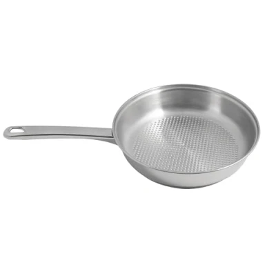 All stainless steel frying pan, without any chemical coating, for searing, baking, deglazing and making perfect cooking: meats, vegetables, sauces... - Ideal for 5 to 6 people Made of 0.8 mm 18/10 stainless steel, suitable for all hobs, including induction, oven and refrigerator. Optimum and even heat distribution over the entire surface of the pan, thanks to the triple layer base (stainless steel 18/10, aluminium, 18% steel) Designed with an effective "honeycomb" cooking surface for cooking without attaching: Natural non-stick surface, without any other coating, for healthy cooking, without fat Hollowed-out handle limits the temperature rise for a secure grip without the risk of burning. Easier and more comfortable to handle Heavy duty, sturdy construction to ensure a long service life. Very easy to clean, dishwasher-safe. It's easy and fast