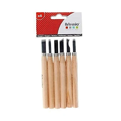 Artemio 18004059 Set of 6 Gouges, Wood, Multi Colour, 9 x 1.5 20 cm