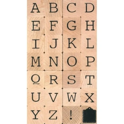 28 wooden stamps 2cm square stamp alphabet: 1cm high The design is engraved in rubber and fixed to a wooden base Unique collector's item and not only a craft tool
