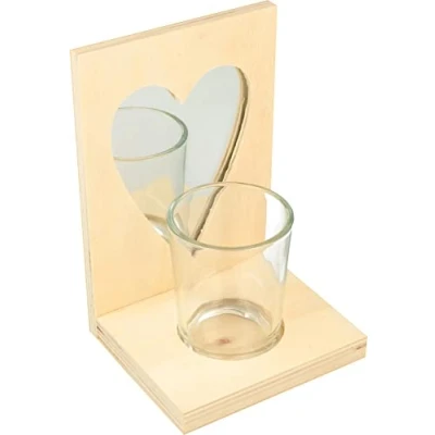 Candle holder+mirror heart 110x9x15cm Model Number: 14003501 Colour: Wood