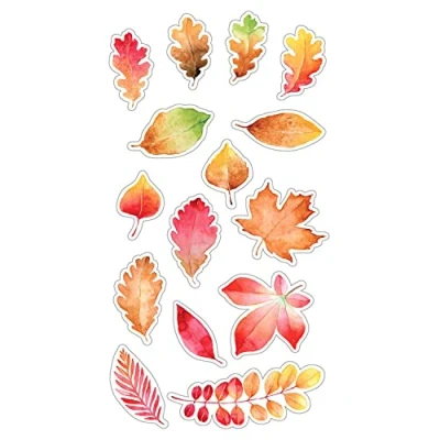 15 fall themed stickers with different shapes and colours to decorate your cards, notebooks and scrapbooking projects!