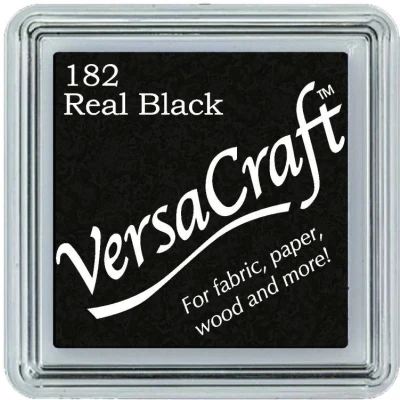 Real Black Versacraft Small Fabric Ink Pad for Stamps. Use on a variety of surfaces fabric paper wood and more. When stamping on fabric heat set and pre-wash to remove sizing. Great for archival scrapbooking projects due to its opacity and permanence.. To aid your keyword search this product has been categorised as Christmas and Wedding. Raised pad size 24mm x 24mm. Application - Fabric, unpainted wood, uncoated paper, Japanese papers,. leather(tanned leather), unglazed pottery. Drying - Needs to include drying time for paper. Treat with heat source (dryer, iron or heat gun) for at least 15 seconds for permanence. Drying time varies based on surface/material, humidity, etc.. When heat setting with an iron, place a cloth between your project and the iron.. Ink must be heat set on textiles with an iron. It is recommended that the “cotton” or “high” temperature setting be used for at least 15 seconds. Lower temperature settings may result in decreased permanence.. After heat setting, items can be washed and images will remain (varies by fabric type.) Use hair dryer to heat set VersaCraft on wood and terracotta. Ink may wash out of fabrics prior to heat setting (some staining may occur.). VKS-182