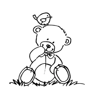 Artemio Wooden Stamp F Teddy Bear with Bird, 5 x 2.5 6 cm