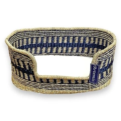 Artemis Handcrafted Natural Seagrass Dog Bed Navy Blue Design (XL)