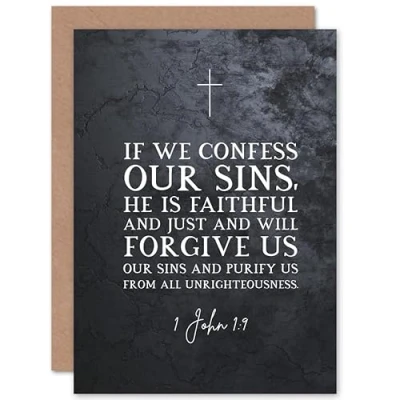 Artery8 1 John 1:9 Confess He is Faithful and Just Forgive Us Our Sins Christian Bible Verse Quote Scripture Typography Sealed Greeting Card Plus Envelope Blank inside