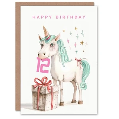 Artery8 12th Birthday Card Unicorn Stars Present Fun Kids Age 12 Year Old Child For Son Daughter Girl Boy Happy