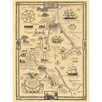 Artery8 1929 Pictorial Map Of Plymouth Kingston And Duxbury Premium Wall Art Canvas Print 18X24 Inch