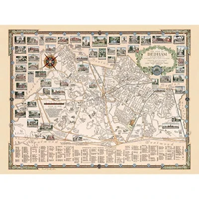 Artery8 1935 Ernest Dudley Chase Map Town Dedham Massachusetts Large Wall Art Poster Print Thick Paper 18X24 Inch