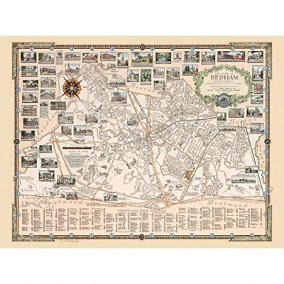 Artery8 1935 Ernest Dudley Chase Map Town Dedham Massachusetts Unframed Wall Art Print Poster Home Decor Premium
