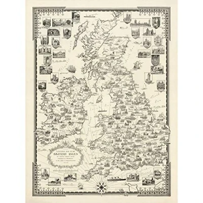 Artery8 1935 Ernest Dudley Chase Pictorial Map British Isles Premium Wall Art Canvas Print 18X24 Inch