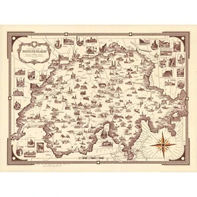 Artery8 1936 Ernest Dudley Chase Pictorial Map Switzerland Unframed Wall Art Print Poster Home Decor Premium