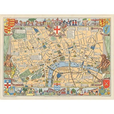 Artery8 1938 Childrens Map Of London Premium Wall Art Canvas Print 18X24 Inch
