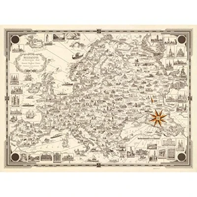 Artery8 1938 Ernest Dudley Chase Pictorial Map Of Europe Art Print Canvas Premium Wall Decor Poster Mural