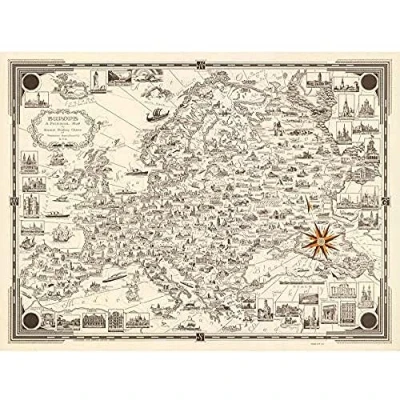 Artery8 1938 Ernest Dudley Chase Pictorial Map Of Europe Unframed Wall Art Print Poster Home Decor Premium