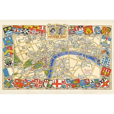 Artery8 1947 Pictorial Map London Royal Wedding Picture Premium Wall Art Canvas Print 18X24 Inch