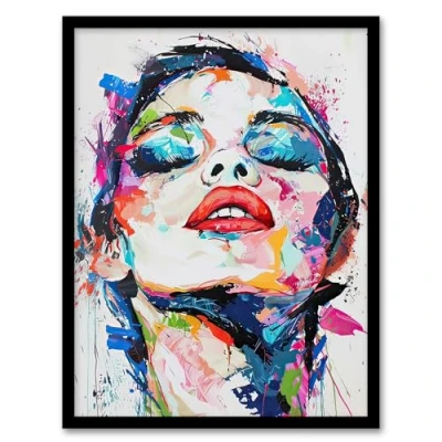 Artery8 1960s Colourful Girl Portrait Modern Art Living Room Artwork Framed Wall Print A4