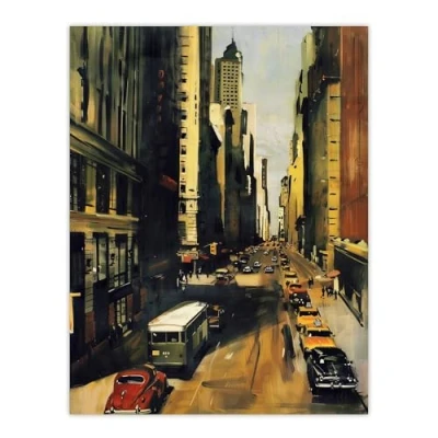 Artery8 5th Avenue 1950s Painting Vintage Cars New York Living Room Large Wall Art Poster Print Thick Paper 18X24 Inch