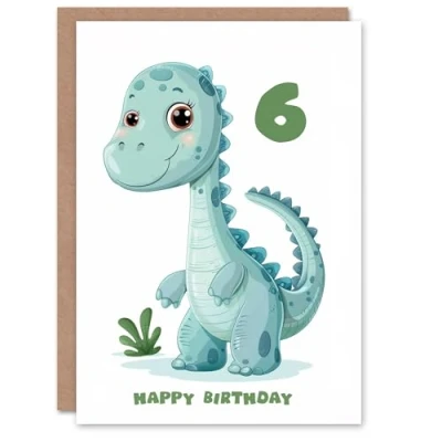 Artery8 6th Birthday Card Cute Blue Baby Dinosaur Cartoon Kids Age 6 Year Old Child For Son Daughter Girl Boy Happy