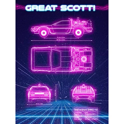 Artery8 80s Synthwave Blueprint Sports Car Space Time Travel Premium Wall Art Canvas Print 18X24 Inch