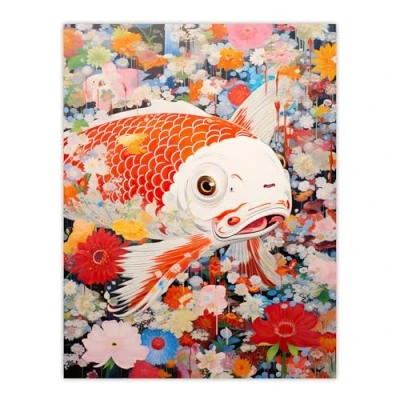 Artery8 A Fish Out Of Water Superflat Japanese Koi Carp Floral Modern Artwork Extra Large XL Wall Art Poster Print