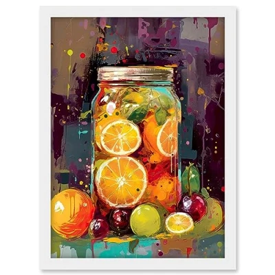 Artery8 A Jar of Homemade Orange and Plum Fruit Preserves Artwork Framed A3 Wall Art Print