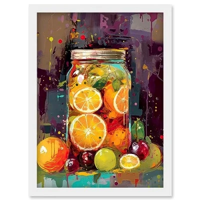 Artery8 A Jar of Homemade Orange and Plum Fruit Preserves Artwork Framed Wall Art Print A4