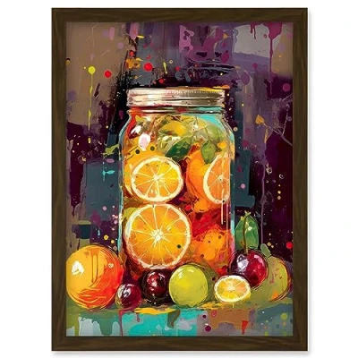 Artery8 A Jar of Homemade Orange and Plum Fruit Preserves Artwork Framed Wall Art Print A4