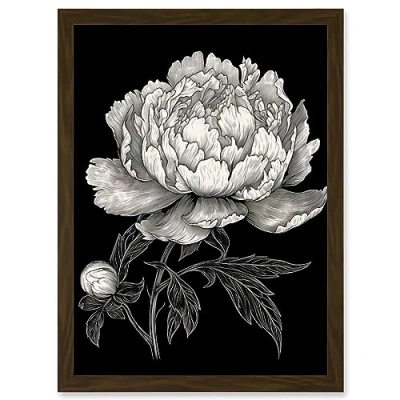 Artery8 A Peony Flower Bloom Black and White Blind Contour Artwork Framed Wall Art Print A4