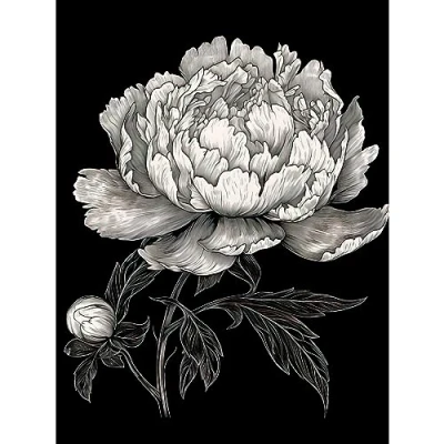 Artery8 A Peony Flower Bloom Black and White Blind Contour Extra Large XL Wall Art Poster Print