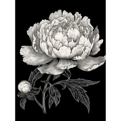 Artery8 A Peony Flower Bloom Black and White Blind Contour Large Wall Art Poster Print Thick Paper 18X24 Inch