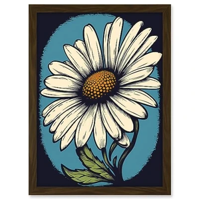 Artery8 A Single Daisy Flower Bloom Bold Rockabilly Americana 50s Artwork Framed A3 Wall Art Print