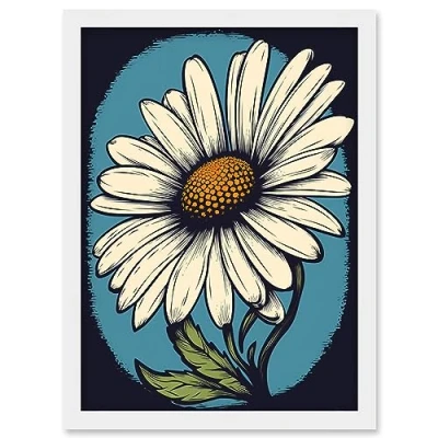 Artery8 A Single Daisy Flower Bloom Bold Rockabilly Americana 50s Artwork Framed Wall Art Print A4