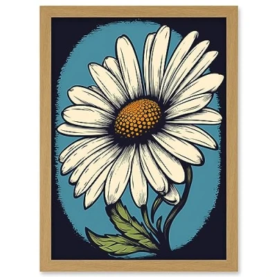 Artery8 A Single Daisy Flower Bloom Bold Rockabilly Americana 50s Artwork Framed Wall Art Print A4