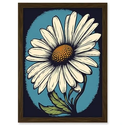 Artery8 A Single Daisy Flower Bloom Bold Rockabilly Americana 50s Artwork Framed Wall Art Print A4