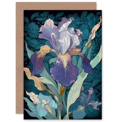 Artery8 A Single Iris Flower Bloom for Wife Her Mum Sister Daughter Mom Gran Nan Birthday Thank You Congratulations Blank Art Greeting Card