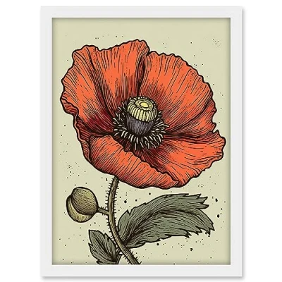 Artery8 A Single Poppy Old School USA Tattoo Ink Body Art Rockabilly Americana 50s Artwork Framed A3 Wall Print